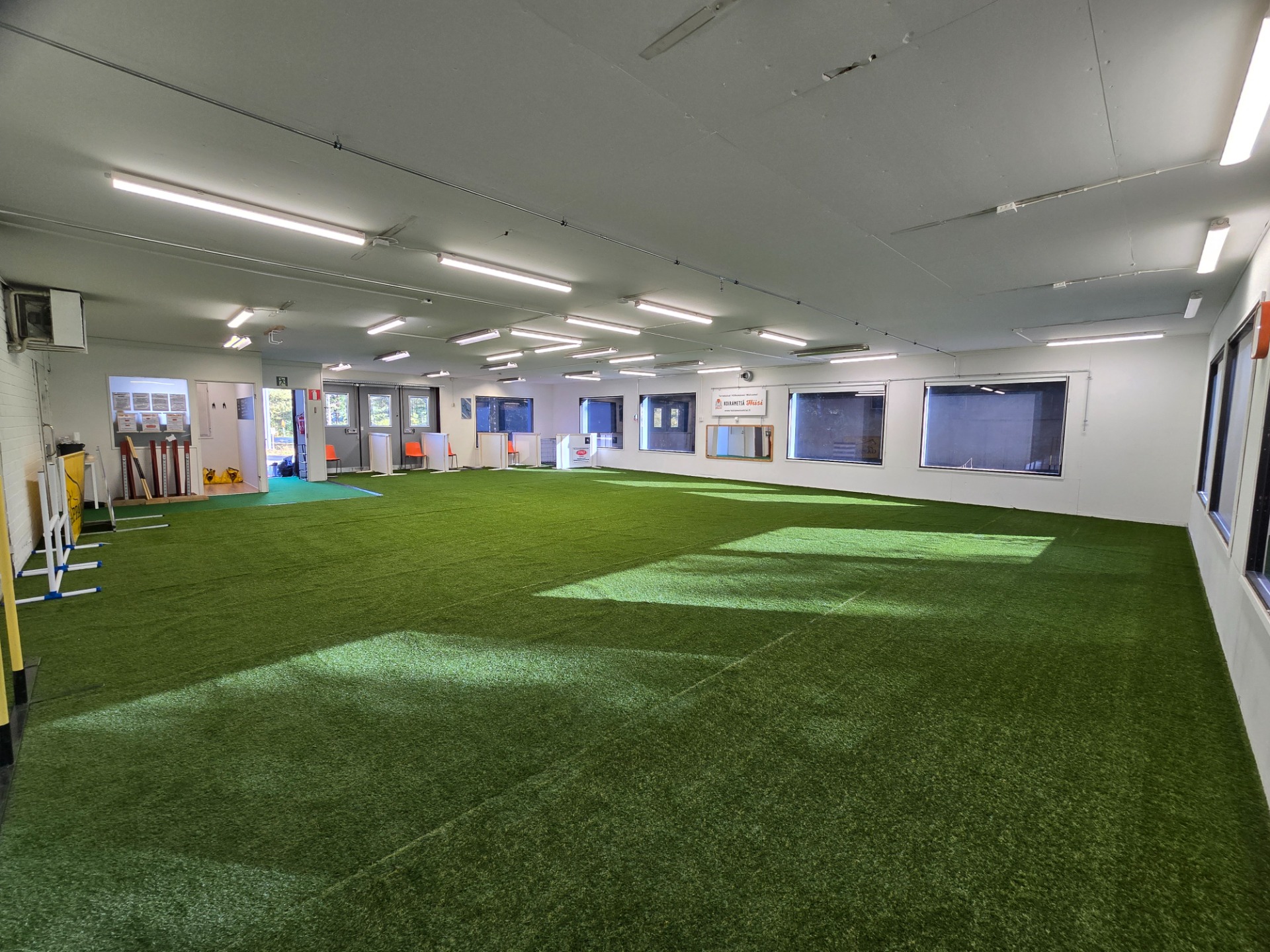 Hallin pohjana toimii 10mm solumuovijoustokerros, jonka päällä on 25mm ProTurf tekonurmimatto.